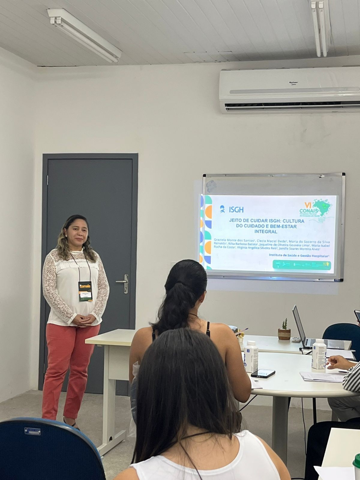 Para Graziela Monte, coordenadora do Programa Jeito de Cuidar do ISGH, participar do evento foi uma oportunidade valiosa de compartilhar as ações do instituto voltadas para o fortalecimento da cultura do cuidado interno. “Participar do CONAIS foi uma experiência incrível e muito enriquecedora. Poder compartilhar o Programa Jeito de Cuidar do ISGH, e tudo o que estamos construindo para promover o bem-estar integral e fortalecer a cultura do cuidado com quem cuida, foi motivo de grande orgulho. Foi gratificante mostrar como o cuidado com os colaboradores tem se tornado um diferencial na promoção da saúde, da segurança e da qualidade de vida no ambiente de trabalho”, destacou Graziela.