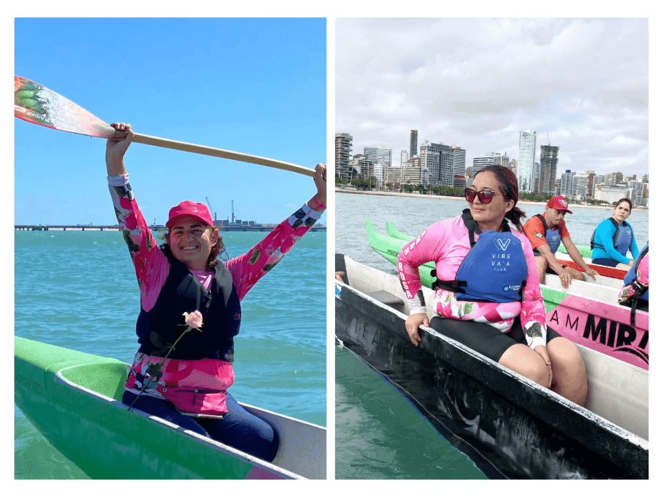 Esse foi o caso de Rilka Barbosa, gerente de Desenvolvimento do Instituto de Saúde e Gestão Hospitalar (ISGH). Diagnosticada em um estágio mais avançado da doença, sua trajetória teve muitos desafios, mas também se tornou uma história de vitória. “Uma coisa que foi muito importante no meu tratamento é a minha rede de apoio, tanto a minha família quanto os meus colegas de trabalho aqui no ISGH. Hoje me sinto uma nova pessoa. Estou mais aberta a conhecer novas atividades, como a canoagem, que pratico junto às mulheres do movimento Remadoras Rosa”, compartilha.