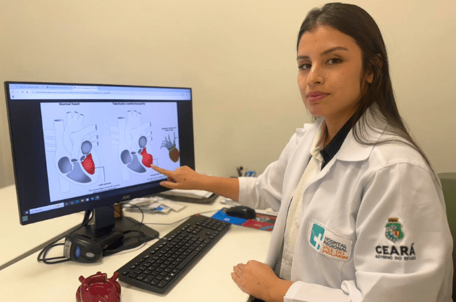 A profissional da unidade da Secretaria da Saúde do Ceará (Sesa) e gerida pelo Instituto de Saúde e Gestão Hospitalar (ISGH), em Limoeiro do Norte destaca que, embora os sintomas sejam parecidos, a condição nada tem a ver com um infarto. “É uma doença que não tem, em sua maioria, obstrução das artérias coronárias, ou seja, os vasos mais importantes do coração. É desencadeada por estresse físico e emocional, diagnosticado por meio de exames de imagem, como o cateterismo”, pondera.